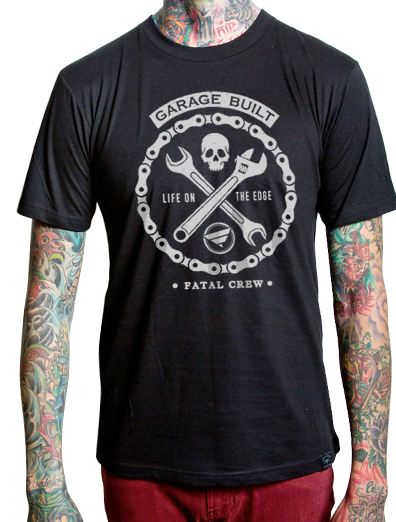 Classic Fatal design on a Premium Motorsports Fatal tee… – Designed and screen printed in the USA, imported fabric – Slim Fit – 50% Cotton, 50% Poly – Printed neck label for a no-tag feel